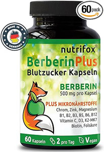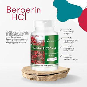 Dabei kann das Berberin die so genannte Gluconeogenese (Glucoseproduktion) in der Leber deutlich drosseln und ist bei der Regulierung des Blutzuckerspiegels, laut Studien, eine empfohlene Menge von 3 x 500 mg täglich genauso effektiv wie die geläufigen Antidiabetika wie z.B. Metformin® oder