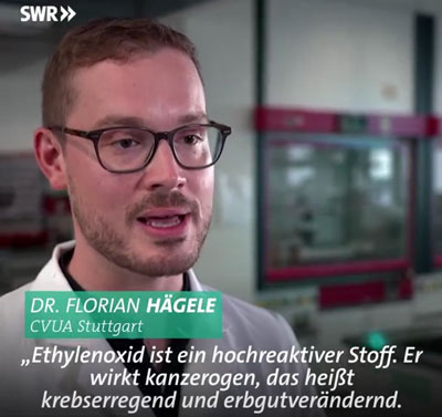 Ethylenoxid ist trotz Verbot in der EU immer noch in Lebensmitteln zu finden. SWR Sendung „Marktcheck“ hat ein nettes Info-Video (hier klicken um SWR Video zu starten) veröffentlicht, oder den Marktcheck Youtube-Kanal besuchen, zum Thema am 11.09.2021 veröffentlicht. Hier wird deutlich erklärt wie bedenklich dieser Stoff ist und das man sich trotz EU-Regulierung über die Verbote teilweise einfach hinwegsetzten.