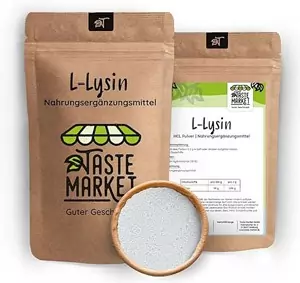 Hinweis: Wenn Sie an Herpes-Simplex leiden und die Aminosäure L-Arginin zu sich nehmen, was ja grundsätzlich gut ist, so müssen Sie L-Lysin zuführen, da diese beiden Aminosäuren den gleichen Transportweg im Körper nehmen und somit das Herpesrisiko stark reduziert wird.