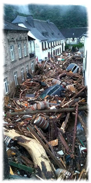 Der Mensch kann ca. 3 Tage (siehe 3 x 3 des Lebens) ohne jegliches Trinkwasser überleben, aber ab dem 2 Tag ist es schon unerträglich und Beobachtungen in den Krisengebieten haben deutlich gemacht, wenn man sich auf die Hilfe anderer (besonders staatlicher) verlassen muss, so ist man verlassen. Nur wer selber vorbereitet war und sich nebst seiner Notausrüstung in Sicherheit bringen konnte hatte enorme Vorteile. Auch wenn THW und noch mehr freiwillige Helfer schnell vor Ort waren, so waren etliche Orte und Regionen nicht mal mehr zugängig und man hat in den Trümmern nach Wasser und Essen gesucht. Es gab kein sauberes Wasser mehr und das wo überall zu sehen war, konnte man nicht mal auf der Haut ertragen, da hier so viel Chemie mit enthalten war. Besonders der Schlamm überall war mit allem erdenklichen durchsetzt und hochtoxisch.